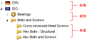 除了您定义的自定义文件夹和零部件,左窗格中的 Toolbox 标准树还列出了标准、类别和类型。