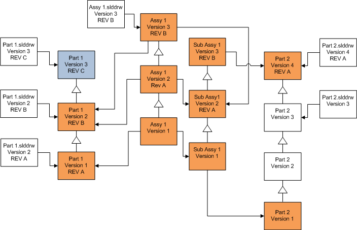 所有組合件及其所參考的零件及次組合件都會被升級。