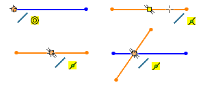 在 SOLIDWORKS 中游標會改變形狀來表示其所經過之物件的類型;例如,頂點、邊線或面。 在草圖中游標顯示如端點、中點、交點的限制條件,游標並顯示如直線、矩形、及圓的圖元類型。