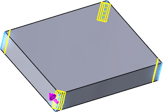 當面混合處有不清楚的情況發生時,可解決模糊不清的選擇。 在輔助點頂點中按一下,然後在您要產生「面 - 面」導角的那一側,按一下頂點。 導角即會在靠近輔助點的位置產生。 |
