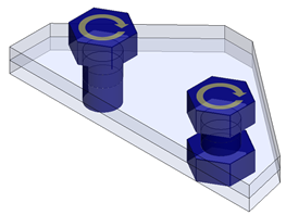 Améliorations des performances de SOLIDWORKS Simulation Plusieurs améliorations apportées dans les zones de graphique, le maillage et la formulation de contact améliorent les performances globales du produit Simulation. Les symboles des connecteurs d'axe ont été repensés. Avec les nouveaux symboles, vous pouvez identifier dans la zone graphique le type de connecteur d'axe (avec circlip ou clavette de fixation) sans ouvrir le PropertyManager du connecteur d'axe. Symbole de broche avec circlip (aucune translation) Symbole de broche avec clavette (aucune rotation) Les symboles de précharge pour les boulons identifient la précharge appliquée au couple ou à l'axe. Symboles pour les boulons avec précharge de couple Symboles pour les boulons avec précharge d'axe Les témoins de défaillance pour les critères de défaillance de coque composite (Tsai-Hill, Tsai-Wu et Contrainte maximale) sont calculés à partir des contraintes nodales. Dans les versions précédentes, les témoins de défaillance étaient calculés à partir des valeurs de contrainte élémentaires. Le maillage basé sur la courbure prend en charge les méthodes adaptatives H et P. Une allocation de mémoire optimisée et une prise en charge multithread pour les compilateurs Intel améliorent la performance des études avec liaison surface à surface et des définitions de contact sans pénétration. Le temps passé par le programme sur la phase de formulation pour la liaison et les contacts sans pénétration est réduit. Nette amélioration de performance pour réduire la durée de résolution du solveur itératif FFEPlus pour les études statiques. Sujet parentSOLIDWORKS Simulation