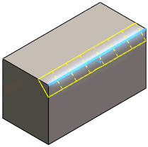 Sélectionnez des arêtes ou des faces de corps volumiques. Sous Paramètres de chanfrein, sélectionnez une Méthode de chanfreinage pour saisir des valeurs Asymétriques de distances des deux côtés des arêtes de chanfrein sélectionnées, ou Symétrique pour spécifier une valeur unique.
