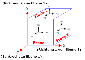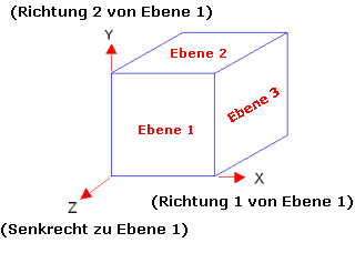 X ist die Richtung 1 von Ebene1, Y ist die Richtung 2 von Ebene 1 und Z steht senkrecht zur Ebene 1.