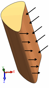 Die 2D-Vereinfachungsoption modelliert das Problem durch Verwendung einer Ebenendehnungs-Annahme. Die Verschiebung in eine der Richtungen ist verglichen mit den anderen beiden vernachlässigbar. Die Ebenendehnungs-Bedingung ist gültig wenn: