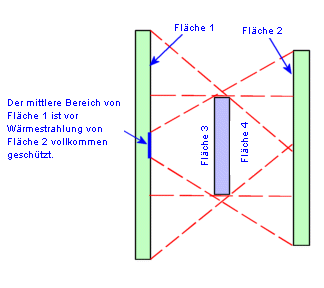 Eine konkave Fläche mit einem entsprechend feinmaschigen Netz kann auf sich selbst strahlen. Ebene und konvexe Fläche strahlen nicht auf sich selbst. Diese Effekte werden automatisch berücksichtigt.