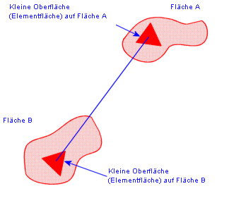 , die die beiden Flächen verbindet. Wenn die beiden Flächen endlich sind, wird der Ansichtsfaktor folgendermaßen definiert: