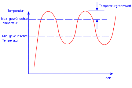 Wenn sich die Temperatur an der Thermostatposition mit einer Flanke einer Seite der Temperaturgrenzwerte nähert, ohne sie zu überschreiten (wie in Kurven 3 und 4), sollten Sie die Lösungszeit erhöhen und die Studie wiederholen.