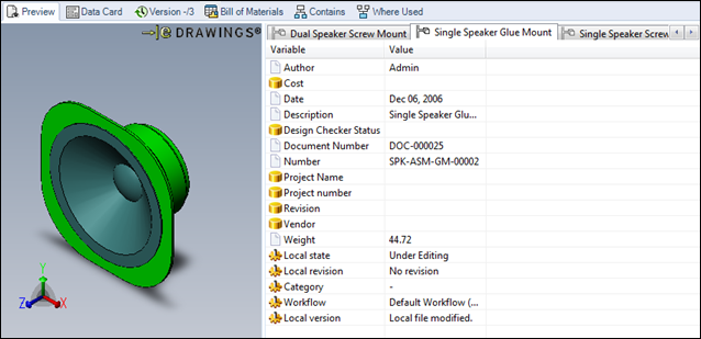 Durante l'anteprima dei file SOLIDWORKS in Esplora risorse (scheda Anteprima), SOLIDWORKS PDM offre più funzionalità e controlli.