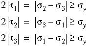 Em outras palavras, o escoamento é baseado na máxima tensão de cisalhamento, que é igual à metade da diferença entre as tensões máxima e mínima principais. Com base nesse critério, a tensão intermediária principal não influencia o estado de resistência.