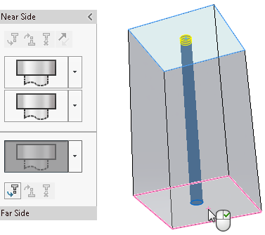 5. No PropertyManager, em Faces dos lados mais próximo e mais distante, selecione Lado mais distante, em seguida, selecione a face oposta no modelo.