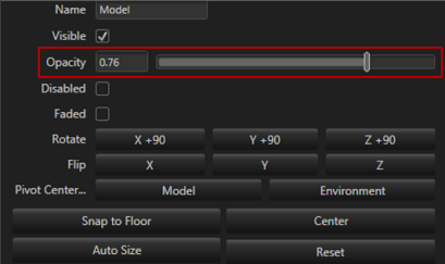 Na peça selecionada, ajuste o controle deslizante da Opacidade na guia Modelos para esmaecer a transparência.