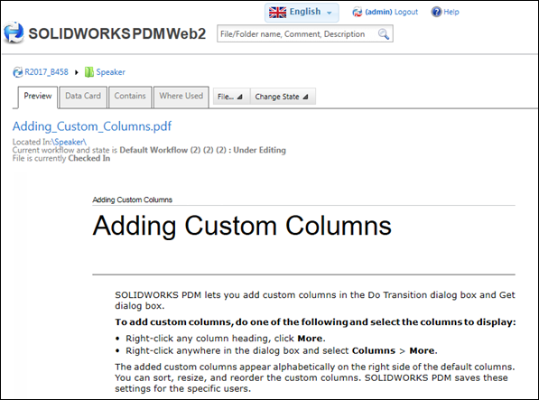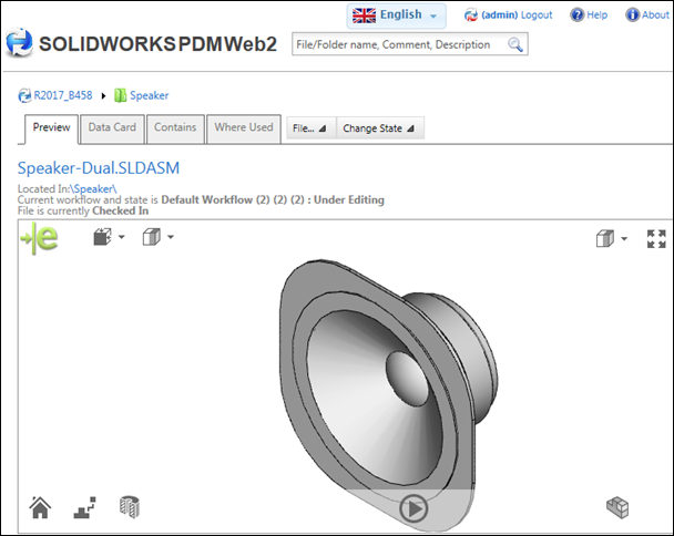 O SOLIDWORKS PDM Professional melhora a tecnologia de exibição no cliente Web2 para arquivos do SOLIDWORKS e outros tipos de arquivo comuns.