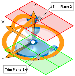 Realiza la torsión de sólidos y conjuntos de superficies alrededor del eje Z del sistema de referencia. Posicione la tríada y los planos de recorte para controlar el grado, la ubicación y el alcance de la torsión. Establezca esta opción: