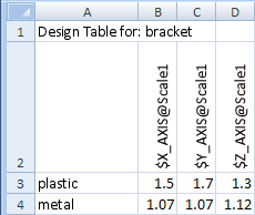 Los encabezados de columna para el control de los factores X, Y y Z de una operación de escala utilizan esta sintaxis: