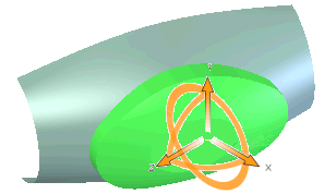 La deformación Empuje de superficie brinda un control más eficiente de la deformación en comparación con la deformación Punto. Constituye, además, una manera predecible de crear operaciones específicas basadas en formas de cuerpos de herramientas. Utilice la anotación del sistema de referencia de la zona de gráficos para ajustar el tamaño del cuerpo de herramienta. Puede establecer coordenadas exactas para colocar los cuerpos de herramientas o puede moverlos dinámicamente con un sistema de referencia en la zona de gráficos.