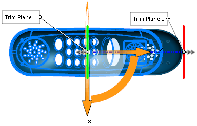 Configure la cantidad de conicidad moviendo la tríada o los planos de recorte. Para ajustar la conicidad, mueva el cursor sobre la arista de un plano de recorte para visualizar el cursor y luego arrastre el plano.