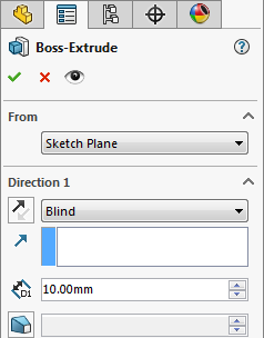La mayor parte de las herramientas de croquizar, operaciones y dibujo de SOLIDWORKS abren un PropertyManager en el panel de la izquierda. El PropertyManager visualiza las propiedades de la entidad u operación de manera que pueda especificar las propiedades sin un cuadro de diálogo cubriendo la zona de gráficos.