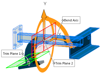 Bir veya daha fazla gövdeyi triad'ın kırmızı X ekseni (bükme ekseni) etrafında büker. Bükmenin derecesini, konumunu ve kapsamasını kontrol etmek için triad ve kırpma düzlemlerini konumlandırın. Bu esnetme tipi endüstriyel tasarım, mekanik tasarım, metal damgalamada yaylanma koşullarını çözümleme, karmaşık yüzey şekillerinden ters açıları kaldırma vb. dahil birçok uygulama için kullanılabilir. Bükümün nötr düzlemi triad orijininden geçer ve triad'ın X-Z düzlemine karşılık gelir. Nötr düzlemdeki kırpma düzlemleri arasındaki yay uzunluğu bükme işlemi boyunca sabit kalır.