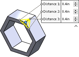 適用於使用對稱參數的偏移面導角。 選擇多個圖元,然後將距離標註編輯為所需的值。