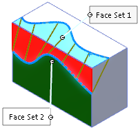 設定「面 - 面」導角的邊界。 使用單一控制線時,導角是對稱的。 您可選擇多個控制線。 控制線可控制面之間的接合。