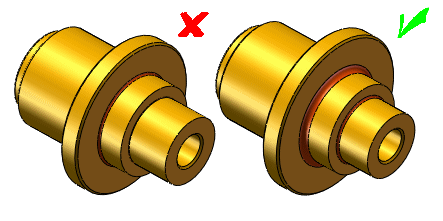 최소 코너 반경 - 선삭 파트용 각진 내부 코너 작성을 피해야 합니다. 큰 노즈 반경이 있는 도구를 선택할 수 있도록 반경을 여유있게 지정합니다. 이렇게 해야 파손이 적습니다. 캐스트와 같은 비 가공 곡면에 수직인 턴다운 곡면은 버(burr)를 초래합니다. 이러한 규칙을 설정하려면 최소 코너 반경 (선삭 파트)를 지정합니다. 관련 태스크 규칙 설정하기
