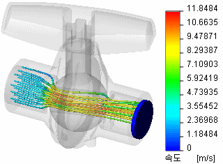 SOLIDWORKS FloXpress는 파트나 어셈블리 모델의 유체 유동 방법을 계산하는 유체 해석 프로그램입니다. 계산된 속도에 기준하여, 파트가 제조에 들어가기 이전에 모델의 취약점을 찾아내서 개선할 수 있습니다.