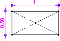 • 스케치의 원점에서 작성된 사각형 또는 직사각형으로, 치수 이름은 다음과 같습니다.