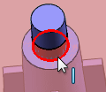 메이팅 모서리의 지름을 자동으로 지정합니다. 이 그림에서는 선택한 구멍 테두리가 핀의 지름을 결정합니다. 메이팅 모서리 선택 전 핀 지름: