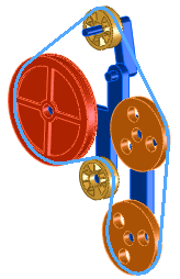 O software calcula o comprimento da correia com base nas posições das polias. Ou então, especifique o comprimento da correia e ajuste as posições das polias (pelo menos uma polia precisa ter um grau de liberdade apropriado).
