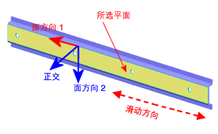 所选平面(以黄色显示)可以沿面方向 1 和面方向 2 滑动。将法向运动设置为零可实现此情况。