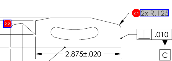 在本例中,您将添加零件序号 2.2。零件序号 2 自动更改为 2.1