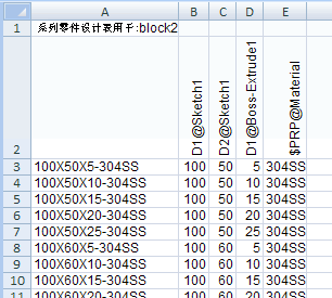 配置出版程序 对话框将出现,并且设计表在单独的窗口中打开。 由于系列零件设计表具有多个行,而且包含每个配置的每个变量的值,因此调色板上会显示系列零件设计表中每个变量的相应控件。