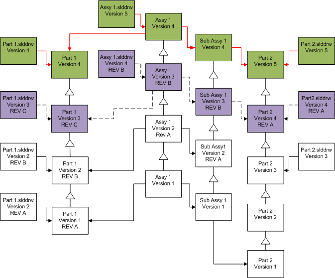 如果組合件及其次組合件參考不是最新版本的零件版本,參考會被移動至零件的最新版本。