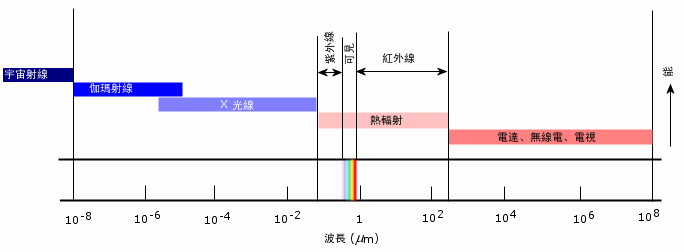 Radiation 熱輻射是有溫度的本體以電磁波形式放射的熱能。 凡是溫度非絕對為零的所有本體都會放射熱能。 因為電磁波可在真空下行進,所以放射時不需要介質。 下圖以波長表示熱輻射的範圍,並比較使用其他方式的輻射 (例如 X 光、γ 光、g 光等等)。 太陽的熱能以輻射方式傳達地球。 由於電磁波是以光速進行,輻射是最快的熱傳遞機制。 目錄 基本輻射定義 史帝芬-波茲曼定律 蒲朗克分佈 真實表面的輻射 表面之間的輻射交換 (表面對表面輻射) 來自薄殼面的輻射 輻射視因子 上層主題熱傳遞的機制 相關概念 傳導 對流