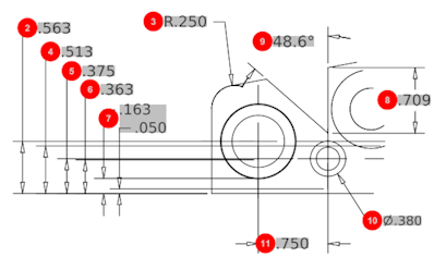 智慧擷取 當 PDF 文件含有支援智慧擷取的可搜尋文字層時,智慧擷取工具可讓您擷取多個特性。 智慧擷取支援從下列應用程式產生的 PDF: CATIAV5 Solid Edge 若要擷取特性,請按一下智慧擷取 (CommandManager) 或用右鍵按一下,然後再按一下智慧擷取。 您可以擷取單一特性或多個特性。 這對於擷取 GD&T 而言相當有用,如此即無需手動辨識每個元素。 使用預先定義的設定,您可以一次擷取多個特性。 擷取的品質取決於用來產生 2D 工程圖的軟體。 上層主題SOLIDWORKS Inspection 單機版本