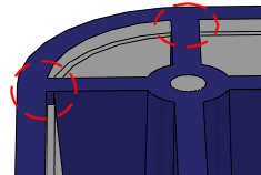 維持現有的牆壁面 如果您將唇部產生在擁有拔模的模型牆壁上,這個選項將會維持拔模(如果可能)並且將現有的牆面擴展至唇部的頂端。如果您消除此選項,軟體會加入面。