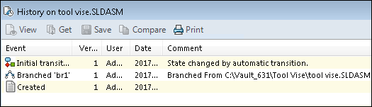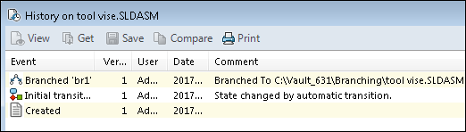 分支現有的檔案結構類似於「複製樹狀結構」,但是 SOLIDWORKS PDM Professional 會保留來源檔案及被分支檔案的歷程。 您可以從被分支檔案的修改版本產生新版本的來源檔案,無論其是否已經移動或重新命名皆可。