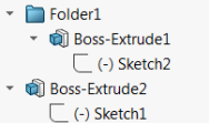先前,如果資料夾已含有晚於位在凍結列下方之圖元而建立的草圖或特徵,凍結列即無法凍結資料夾中的特徵。 舉例而言,假設您的零件文件含有草圖1 及草圖2,而且您從草圖2 建立了填料-伸長1 特徵並從草圖1 建立了填料-伸長2 特徵。然後您將填料-伸長1 特徵新增到資料夾1 中。如果您想將凍結列移到資料夾1 下方,軟體將不會允許您將它移到這個位置,因為資料夾1 含有草圖2,而它在設計樹狀結構中是列在草圖1 前面。