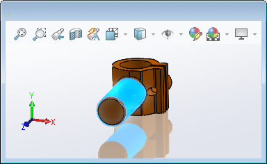 Otevře se PropertyManager Prvky vazby. Také se zobrazí místní panel nástrojů Chybějící entity a v okně se zobrazí původní součást se zvýrazněnou chybějící entitou vazby.