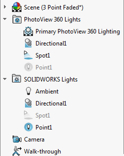 folder also appears. While point, spot, and directional lights and sunlight appear in both folders, the best way to light your model in PhotoView 360 is to use the Primary PhotoView 360 Lighting.