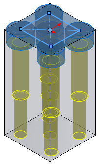 Creating and Positioning Advanced Hole Instances To create and position advanced hole instances: In the PropertyManager, select the Positions tab. You can select multiple points or use a sketch to create multiple holes. If you forget to select the Positions tab and click , the software prompts you to select a point on the face to locate the hole. Click OK in the prompt to open the Positions tab and the Sketch toolbar. Click Center Rectangle (Sketch toolbar) and sketch a rectangle, using the sketch origin on the face as the center. Click to close the Center Rectangle PropertyManager and return to the Hole Position PropertyManager. The software creates five instances of the hole, including a sketch point at the selected origin. You want to remove the center instance. Under Instances to Skip, select the center instance orb to remove only this instance from the preview. Under Sketch Options, you can select Create instances on construction geometry to create instances using construction geometry. Parent topicCreating Advanced Holes