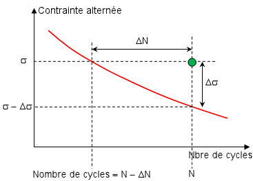 - Ce nombre dépend uniquement de la valeur de la contrainte à un endroit précis et de la courbe S-N. Il ne dépend pas du nombre de cycles de l'événement.