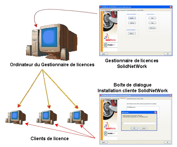 - Le logiciel SolidNetWork License Manager est installé et activé uniquement sur l'ordinateur du gestionnaire de licences.