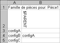 Dans les cellules du corps de la feuille de calcul, saisissez le nom des configurations parentes.