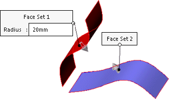 Créer des congés de face surfacique Pour créer un congé de face entre des surfaces: Créez deux surfaces (elles n'ont pas besoin d'être adjacentes). Cliquez sur Congé (barre d'outils Fonctions) ou sur Insertion > Surface > Congé/Arrondi. Dans le PropertyManager, sous Type de congé, sélectionnez Congé de face. Sous Objets à arrondir, définissez une valeur Rayon . Dans la zone graphique, sélectionnez la première face à arrondir pour définir l'Ensemble de faces 1. La flèche d'aperçu indique la direction du congé de face. Cliquez dans Ensemble de faces 2, puis sélectionnez la seconde face à arrondir dans la zone graphique. Si nécessaire, cliquez sur Inverser la face normale de sorte que les flèches pointent l'une vers l'autre. Définissez les autres options du PropertyManager. Sous Options de congé, les options Restreindre les surfaces ne s'appliquent qu'aux congés de face utilisant des surfaces: Option Description Ajuster et attacher Permet d'ajuster les faces arrondies et de coudre les surfaces en un seul corps surfacique. Ne pas ajuster et attacher Permet d'ajouter une nouvelle surface avec congé, mais n'ajuste pas les faces et ne coud pas les surfaces. Cliquez sur .Congé de face avec Ajuster et attacher sélectionné. Sujet parentCongés de face