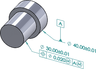 Remarquez la différence dans les tolérances géométriques appliquées au bossage de 30 mm et dans la vue d'annotation utilisée pour les décrire.