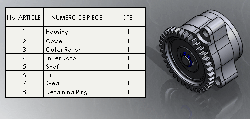Une fois que vous avez créé une nomenclature d'assemblage et que vous avez enregistré cet assemblage, vous pouvez insérer une nomenclature dans une mise en plan référencée. Si vous le souhaitez, vous pouvez lier la nomenclature d'assemblage et celle de mise en plan.