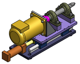 Supposons que vous travaillez sur l'assemblage montré ci-dessous. Alors que vous modifiez différentes parties du modèle, vous souhaitez masquer les composants qui ne sont pas en relation et afficher différemment certains composants en relation afin de mieux voir la zone que vous êtes en train de modifier. Vous utilisez une configuration du modèle, mais affichez les composants différemment dans chaque état d'affichage. Vous pouvez passer rapidement d'un état d'affichage à un autre à mesure que vous modifiez différentes parties du modèle.