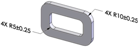 Funzioni supportate Quota dimensione DimXpert Funzione Esempio e tipo di quota Estrusione Diametro Smusso Angolo-distanza Distanza-distanza DimXpert quota gli smussi SOLIDWORKS con il metodo utilizzato per la loro definizione. Gli smussi riconosciuti per via della topologia sono misurati nella forma Distanza-distanza. Cono Un gruppo di coni esterni o interni deve avere lo stesso angolo compreso e giacere su un piano comune. Cilindro Raggio Funzione Esempio e tipo di quota Raccordo Raggio Interseca cerchio Un cerchio derivato all'intersezione di un cono e piano. Il cono deve essere perpendicolare al piano e non può essere creato da un'ellisse. Il cono e piano possono essere interrotti da un raccordo o smusso. Foro lamato Diametro e profondità foro (cieco) Diametro lamatura e profondità Foro svasato Diametro e profondità foro (cieco) Diametro svasatura e angolo Funzione Esempio e tipo di quota Foro semplice Diametro e profondità (se cieco) oppure designazione della filettatura e profondità (se cieco) Intaglio Lunghezza, larghezza e profondità foro (cieco) Specificare il tipo di quota nella finestra di dialogo Opzioni DimXpert. Larghezza Larghezza Funzione Esempio e tipo di quota Sfera Argomento principaleQuota dimensione DimXpert Attività correlate Uso di Quota dimensione DimXpert