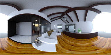 360 レンズは、カメラ位置の周囲 360°を 1 つのワイド スクリーン イメージにキャプチャする非線形投影タイプです。 結果は、全周魚眼レンズの写真に似た